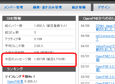 待望のOpenPNE業者対策の第一歩!連続投稿防止と書き込み一括削除が入りました。