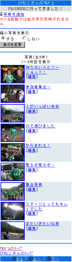 携帯からアルバムの追加・編集・削除が行え、メール投稿にも対応しています。