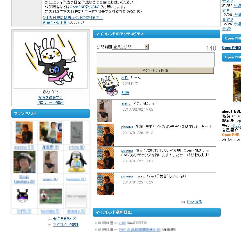 現在OpenPNE3デモSNSに表示されている「アクティビティ機能」。これ何?twitter??