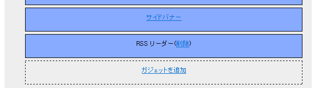 まずは表示したい画面の表示したい箇所にある「ガジェットを追加」をクリックします。今回はサイドバナーに入れますよ。