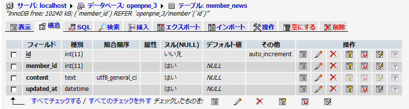 memberテーブルの宣言は別の場所にあるので、しっかりと foreignTableを指定します。