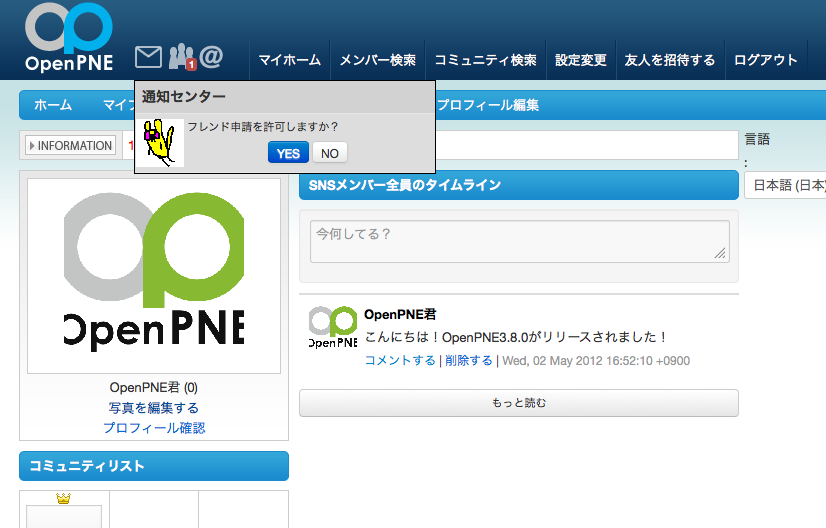 2012年4月27日(金)にリリースした OpenPNE 3.8.0 ですが、