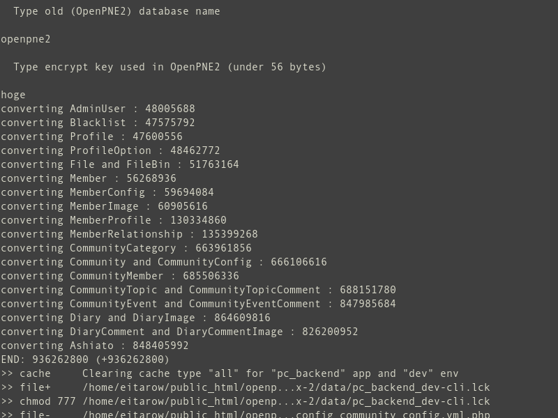 OpenPNE2→OpenPNE3 へのコンバータは現在テスト段階。今週は公式SNSのデータを使ったテストが行われました。コンバートに非常に時間がかかることや、メモリの消費が凄いことから、まだリリースはむずかしいようです。