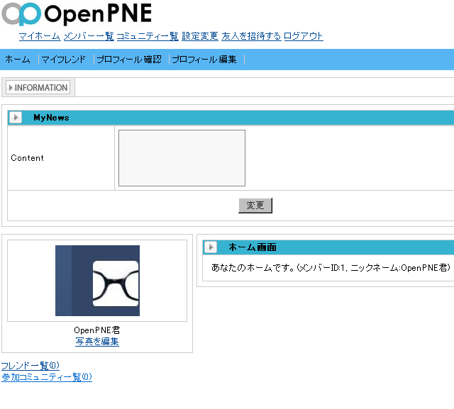 - ・OpenPNE3.0beta1 にはソーシャルアプリケーションと呼ばれる、日記やコミュニティトピック、メッセージなどのSNSのコア部分以外の機能が同梱されていません。