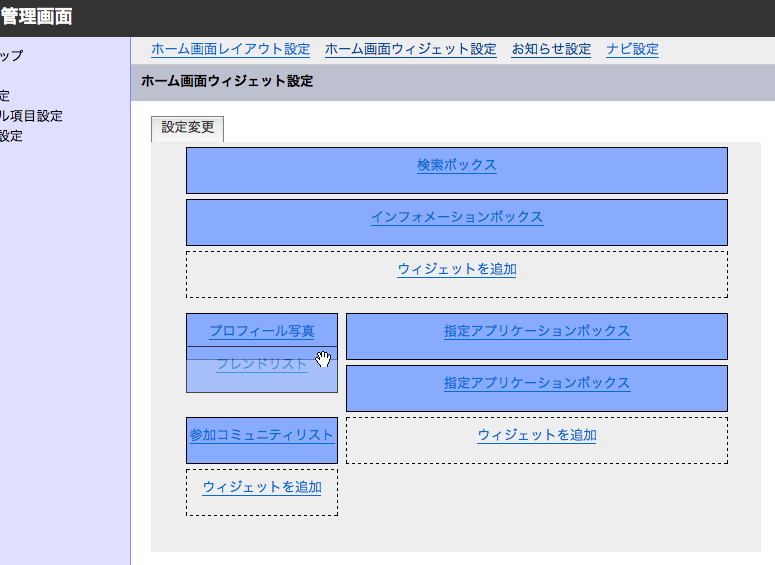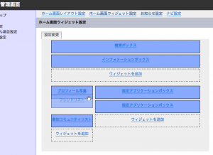 ホーム画面に表示されるプロフィール写真やフレンドリストなどの部品(ウィジェット)を、SNSの管理者が自由に配置できるようになりました。並び順の変更だけでなく、ウィジェットによっては細かく設定をおこなうことができます。